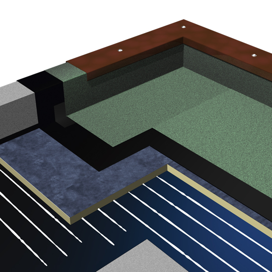 Suggested for roofs covered with bituminous waterproofing membranes, which can be torched welded to Stiferite insulation panels.