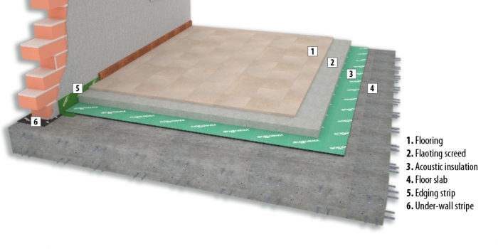 A floating screed is the ideal solution - creating a floating mass of a screed and floor finish. These elements are located above the resilient layer which adds an elastic spring effect to the whole system.
